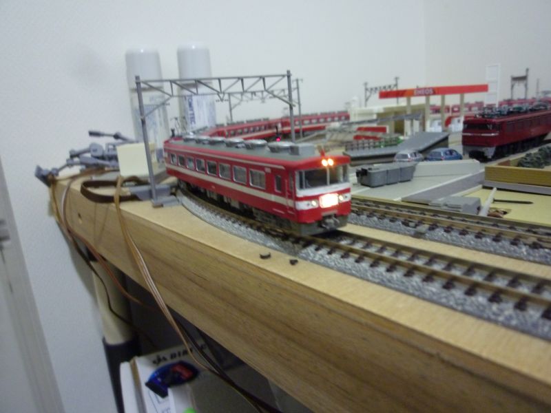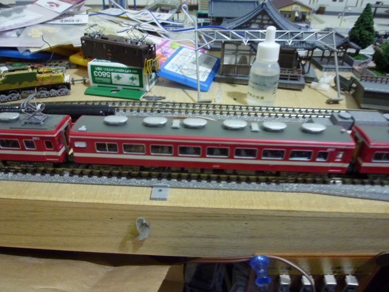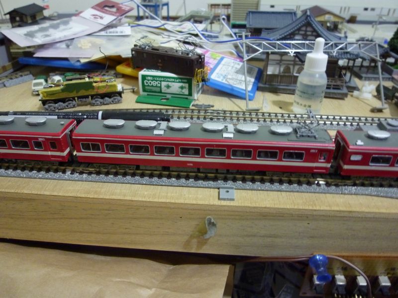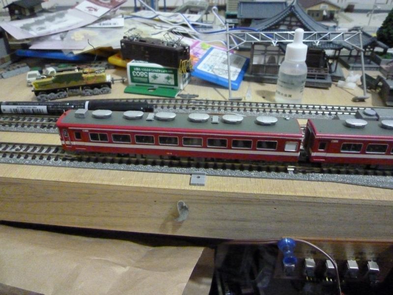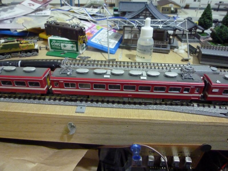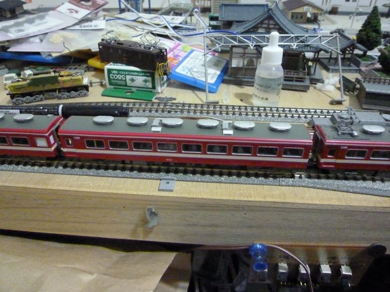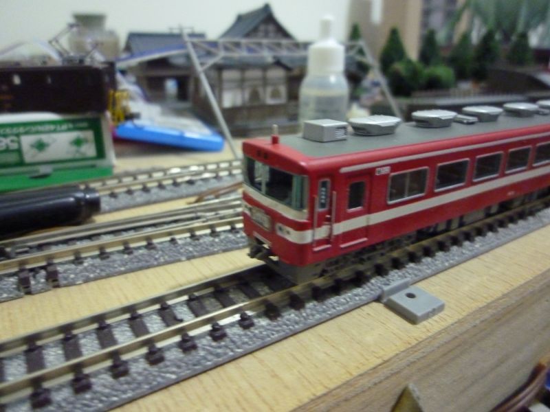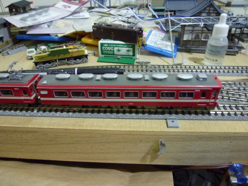 帯の色を白色へ(デカール)、車番を白色へ、トイレ窓をパーツ貼りました。